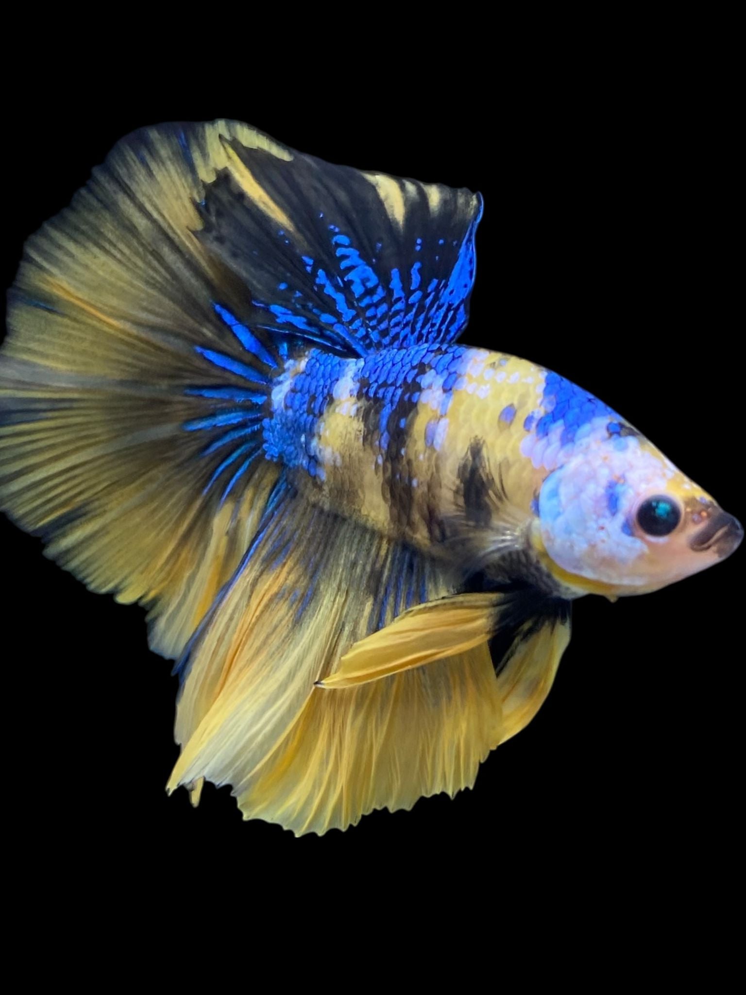 Male Halfmoon - Yellow Galaxy #2320 - Live Betta Fish