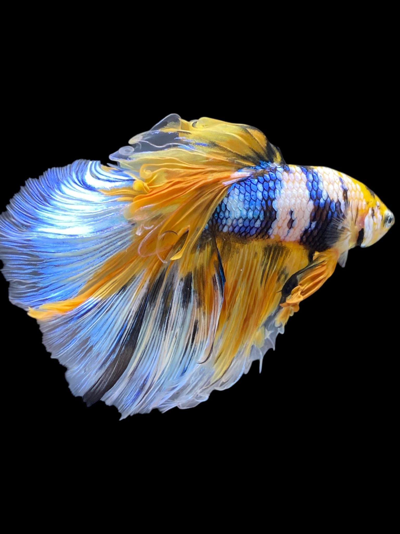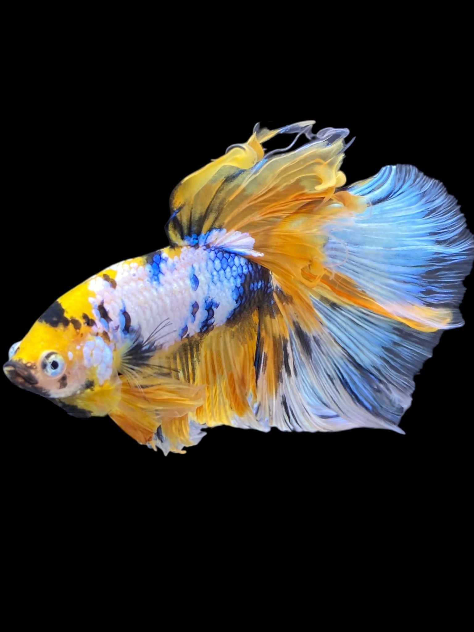 Male Halfmoon - Yellow Galaxy #199 - Live Betta Fish